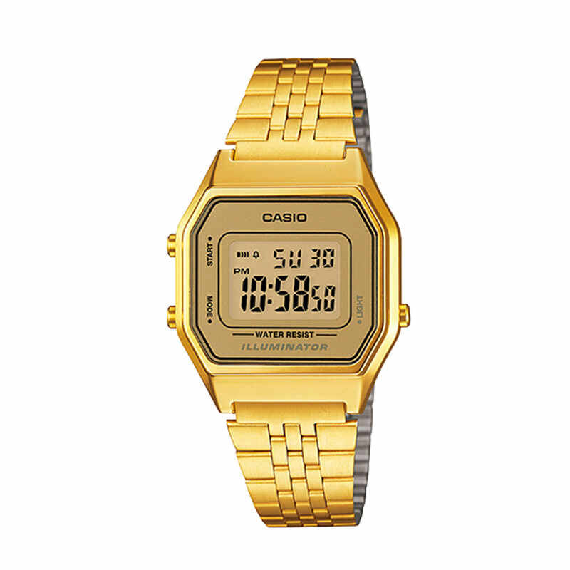 Casio Women's Vintage Series Digital Watch with Gold Stainless Steel Band LA680WGA-9