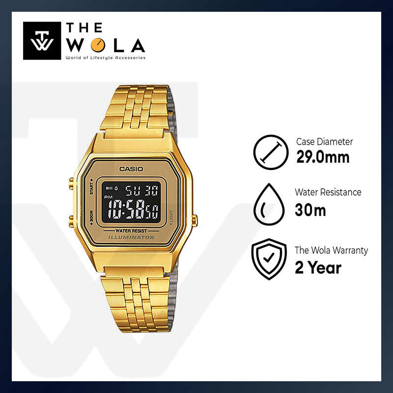Casio Women's Vintage Series Digital Watch with Gold Stainless Steel Band LA680WGA-9B
