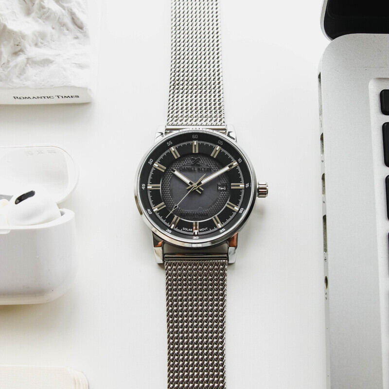 Daniel Klein Solar Men's Analog Watch DK.1.13199-2 Silver Mesh Strap Watch | Watch for Men