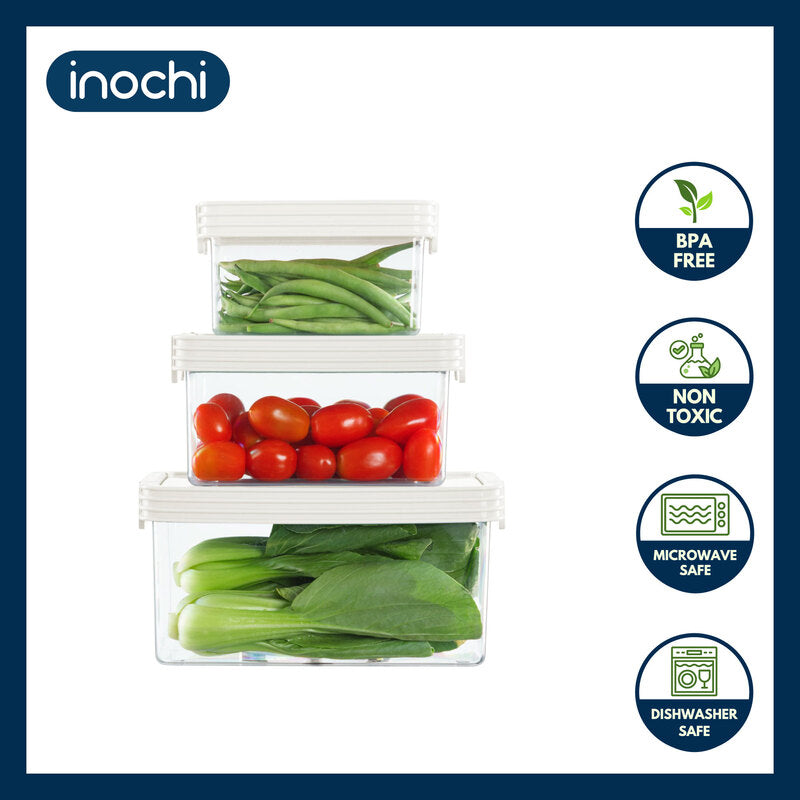 Keep your food fresh, safe, and beautifully organized with the Inochi Hokkaido Rectangular Tritan Food Container Set of 3. Made from premium Tritan and PP materials, these containers are BPA & BPS-free, highly durable, and transparent for easy viewing. With leak-proof silicon-sealed lids and a removable draining tray for freshness, this multi-size set is designed for modern homes. Inspired by the pristine beauty and culinary richness of Hokkaido, Japan, this food storage set combines elegance with everyday functionality.