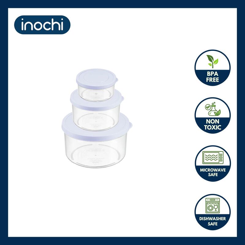 Inochi Hokkaido Round Food Container Set of 3 – 500ml to 2000ml – BPA-Free, Antibacterial, Microwave & Freezer Safe
