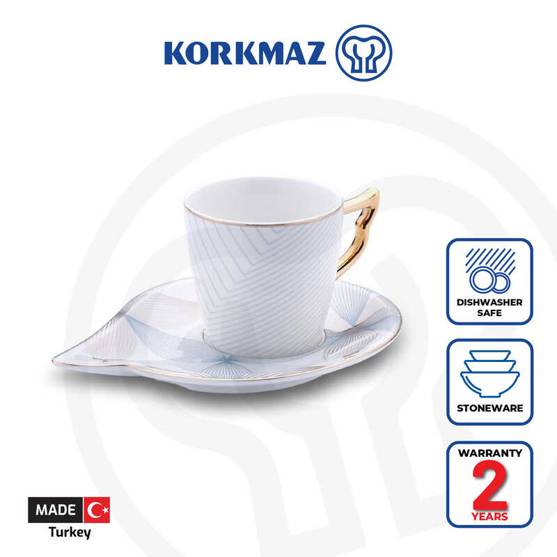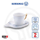 Korkmaz Eva Coffee Espresso Cups with Saucers Set - For Latte Macchiato, Set of 2, Made in Turkey