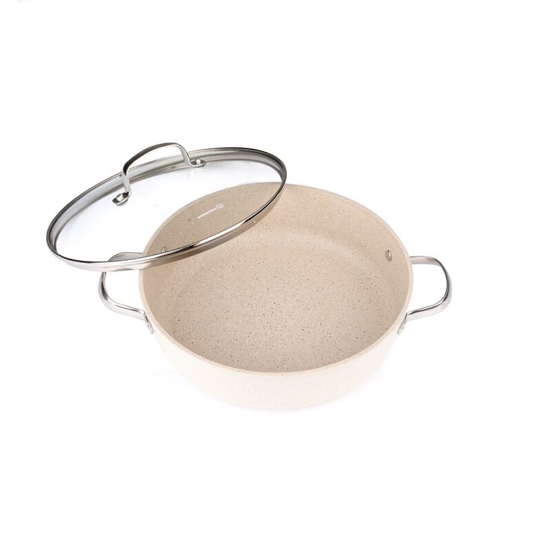 - Granita, produced from recycled, completely natural material, with environmentally friendly technology, makes delicious meals using very little oil with its extra-resistant volcanite-looking PTFE coating and high temperature resistant silicone outer coating.