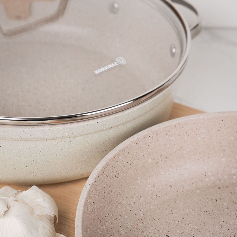 Korkmaz Granita Non-Stick Cookware Set, 7-Piece, Induction Compatible, Stock Pot Set with Frying Pan, Made in Turkey