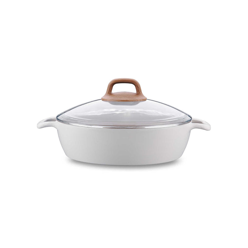 - Ceramic coating with excellent non-stick properties on interior surfaces