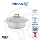 Korkmaz Gusto Non Stick Ceramic Cooking Pot with Glass Lid - 26x7cm, Gas Stove Compatible, Made In Turkey