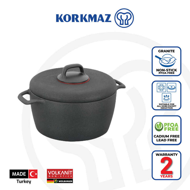Korkmaz Gusto Plus Non-Stick Stock Pot (Soup Pot) - 26x13cm, Free From PFOA, Cadmium, and Lead, Made in Turkey