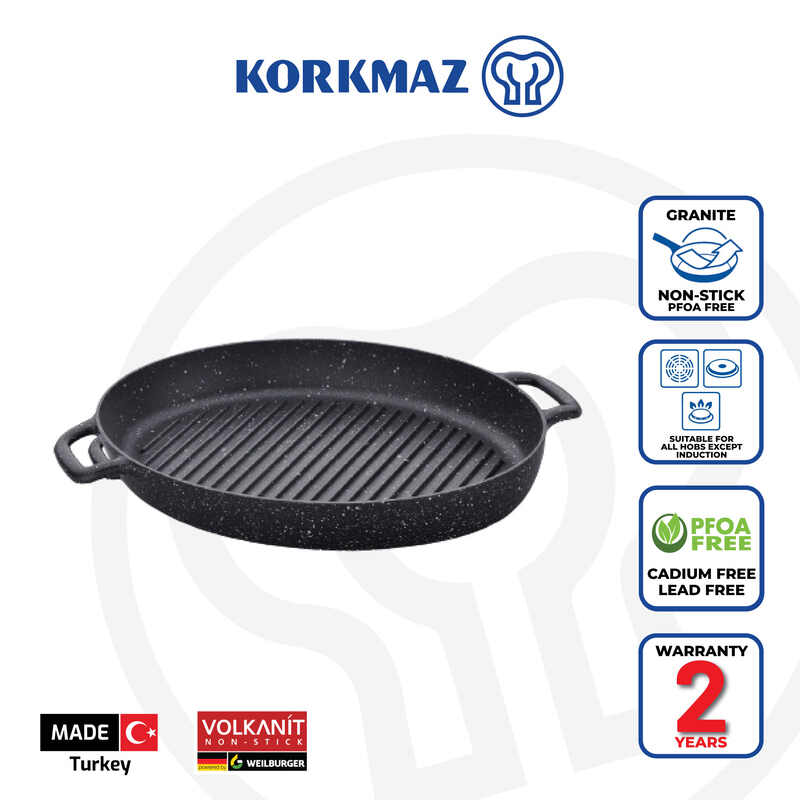 Korkmaz Gusto Volkanit Non-Stick Double Handle Grill Pan - 35x25cm, Free From PFOA, Cadmium, and Lead, Made in Turkey