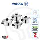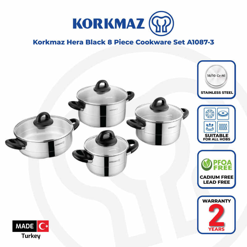 Korkmaz Hera 8-Piece Black Stainless Steel Cookware Set - Induction Compatible, Stock Pot Set, Made in Turkey