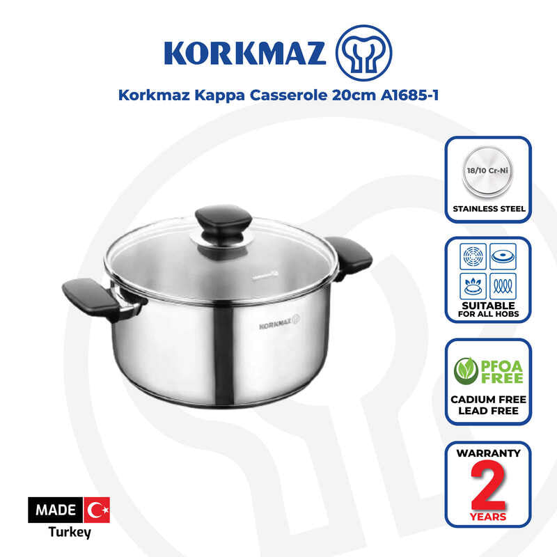 Korkmaz Kappa Stainless Steel Stock Pot (Soup Pot) - 20x10cm, Induction Compatible, Made in Turkey
