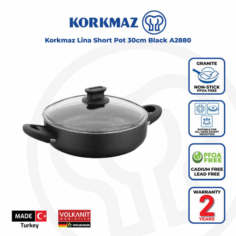 Korkmaz Lina Non-Stick Cooking Pot - 30x8 cm , Free From PFOA, Cadmium, and Lead, Made in Turkey