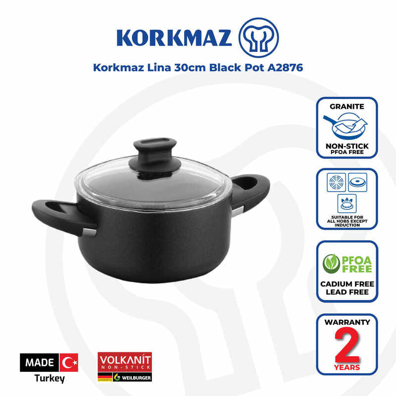 Korkmaz Lina Non-Stick Stock Pot (Soup Pot) - 30x15 cm, Free From PFOA, Cadmium, and Lead, Made in Turkey