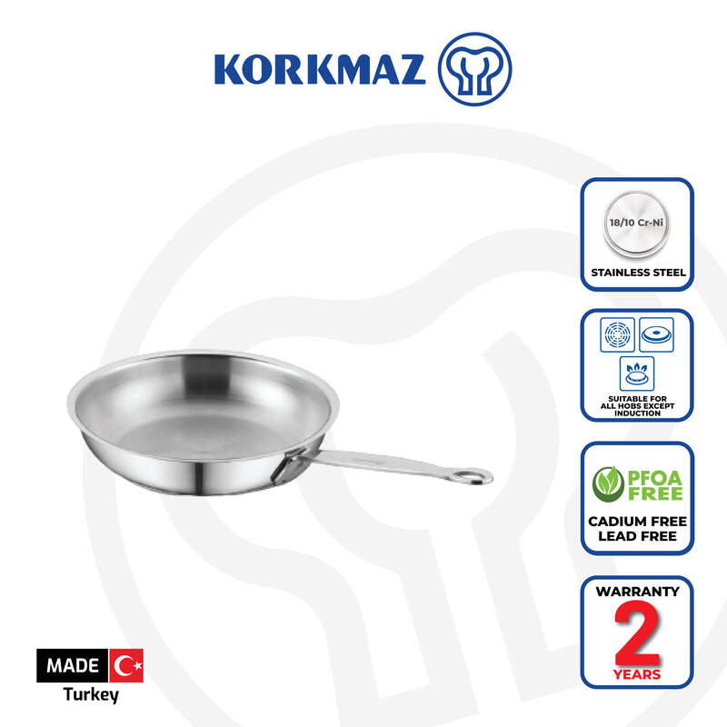 Korkmaz Minika Stainless Steel Frying Pan - 16x4cm, Induction Compatible, Made in Turkey