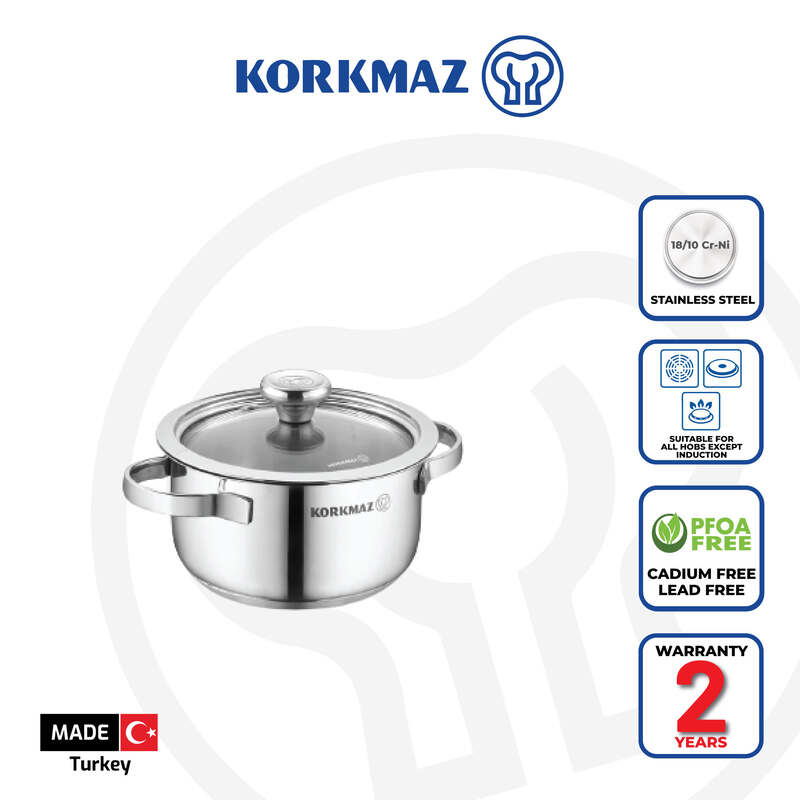 Korkmaz Minika Stainless Steel Pot - Induction Compatible, Made in Turkey