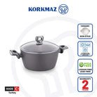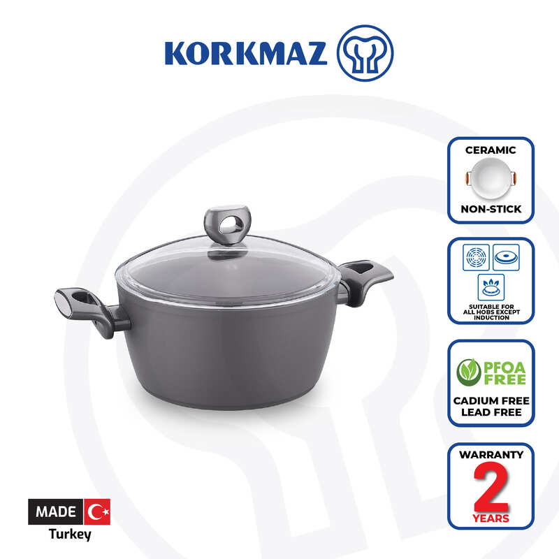 Korkmaz Nora Non Stick Ceramic Pot with Glass Lid - 24x11.7cm, PFOA Free, Gas Stove Compatible, Made In Turkey