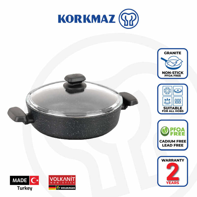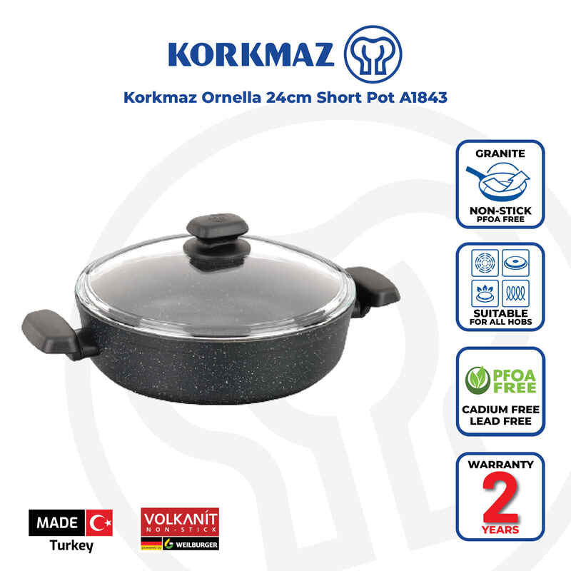 Korkmaz Ornella Non-Stick Cooking Pot - 24x6.5cm, Induction Compatible, Free From PFOA, Cadmium, and Lead, Made in Turkey