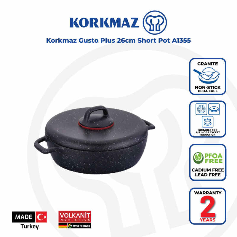 Korkmaz Ornella Non-Stick Cooking Pot - 26x7cm, Free From PFOA, Cadmium, and Lead, Made in Turkey