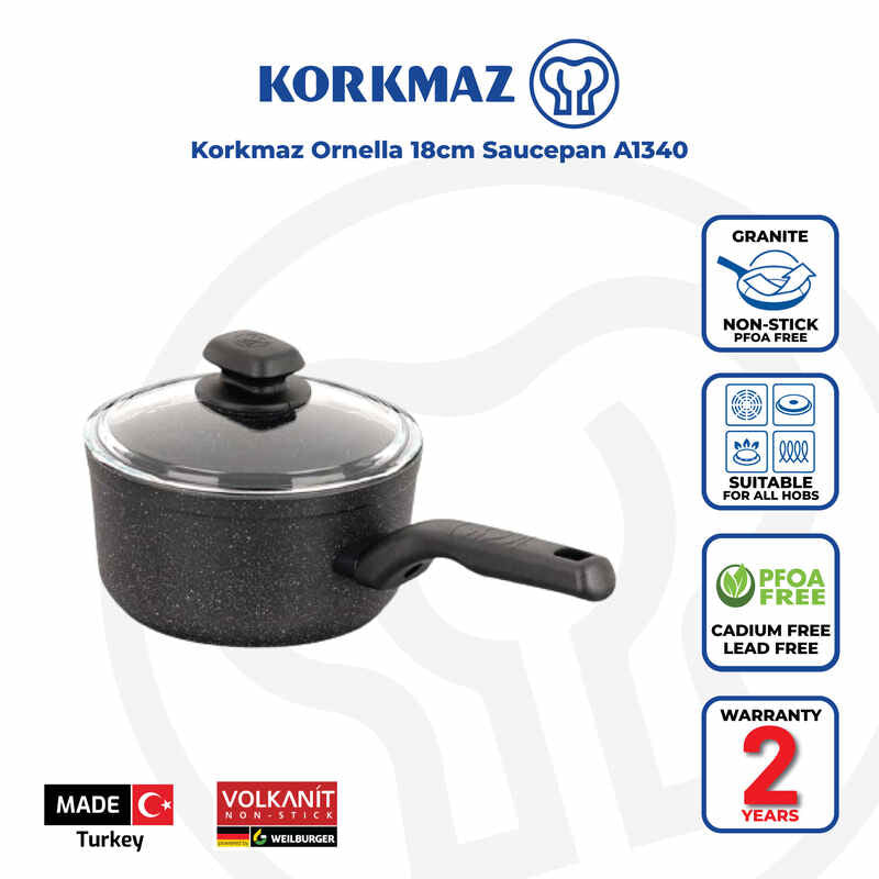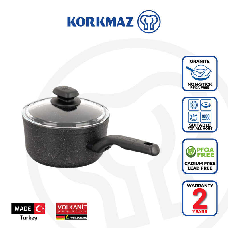 Korkmaz Ornella Non-Stick Saucepan -18x9cm, Induction Compatible, Free From PFOA, Cadmium, and Lead, Made in Turkey
