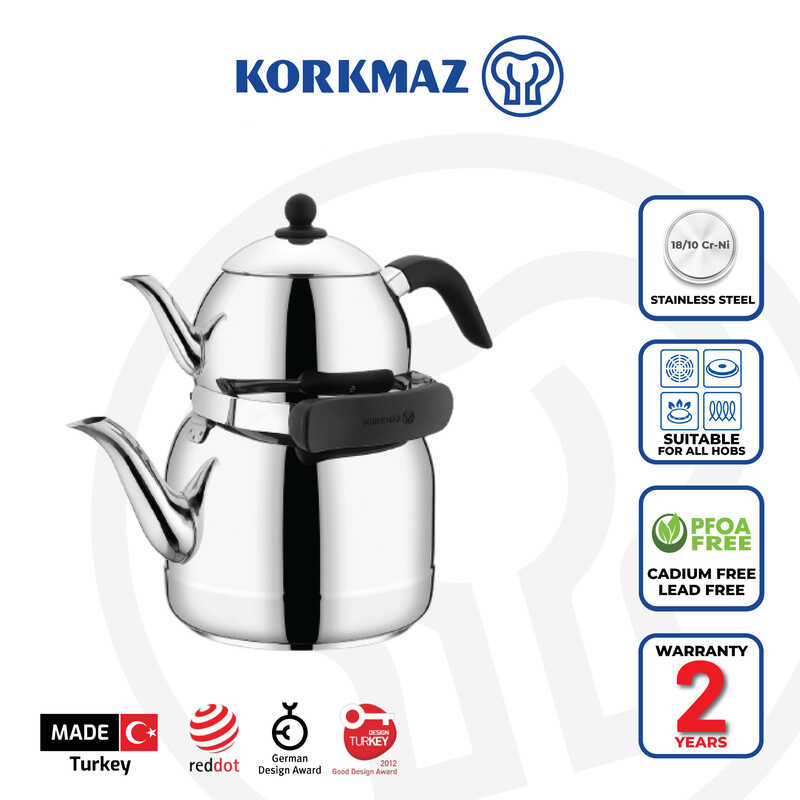 Korkmaz Ornella Premium Quality Stainless Steel Teapot Set - Made in Turkey
