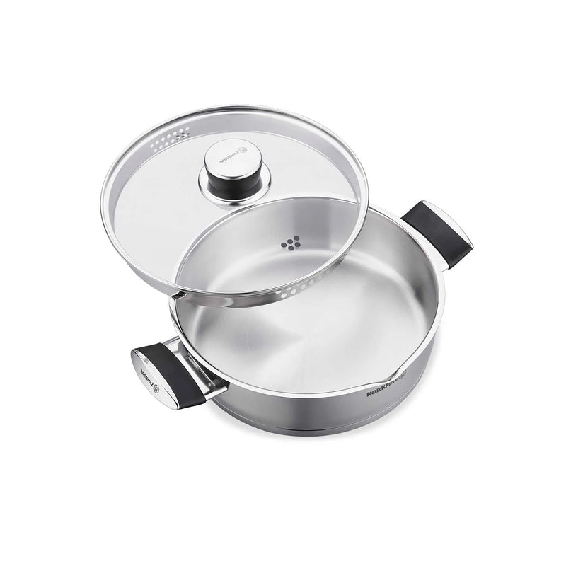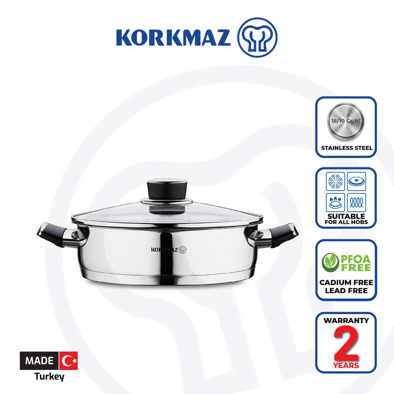 Korkmaz Pera Stainless Steel Cooking Pot with Glass Lid - Made in Turkey, Induction Compatible
