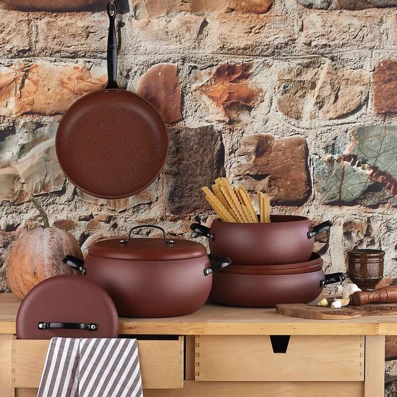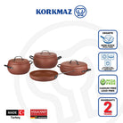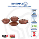 Korkmaz Pottery 7 Piece Non-Stick Cookware Set - Stock Pot Set with Frying Pan, Made in Turkey