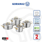 Korkmaz Proline 8-Piece Stainless Steel Cookware Set - Induction Compatible, Stock Pot Set, Made in Turkey