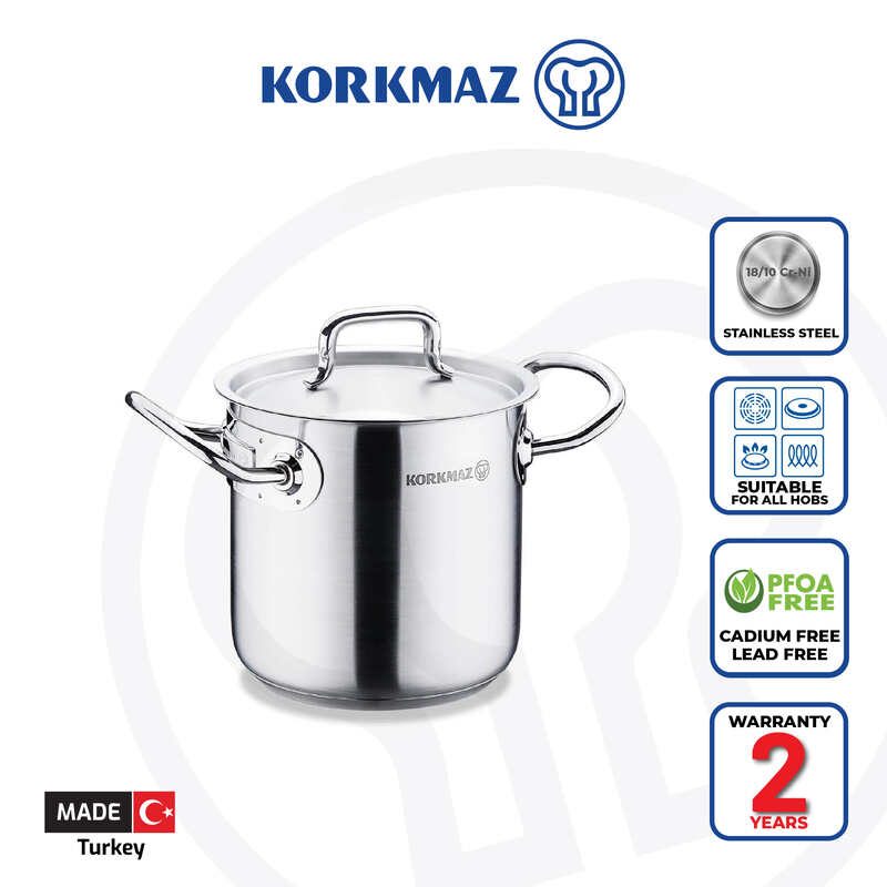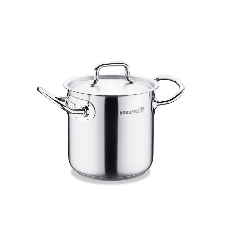 Korkmaz Proline Gastro Satin Stainless Steel Stock Pot with Lid - 14x14cm, Induction Compatible, Made In Turkey