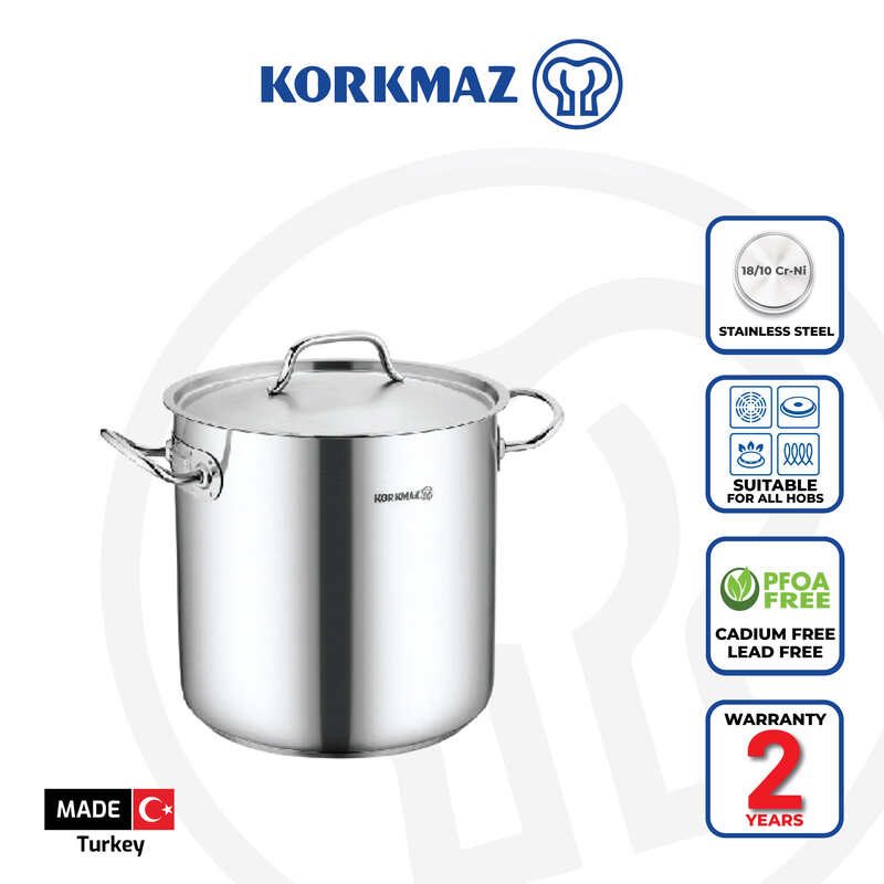 Korkmaz Proline Gastro Stainless Steel Stock Pot (Soup Pot) - Heavy Duty Induction Pot, Made in Turkey