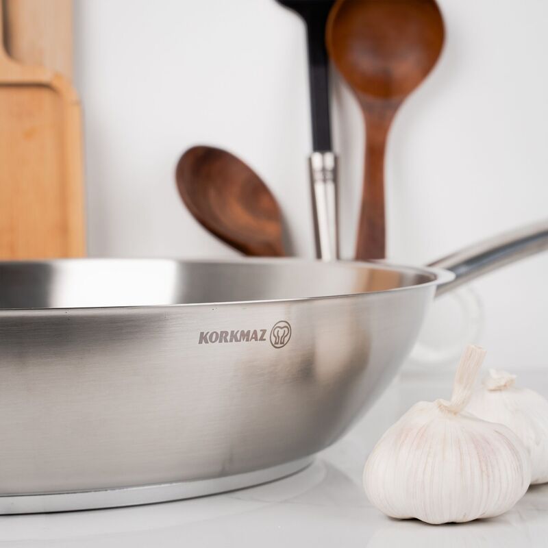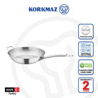 Korkmaz Proline Satin Stainless Steel Frying Pan with Handle - Induction Compatible, Made in Turkey