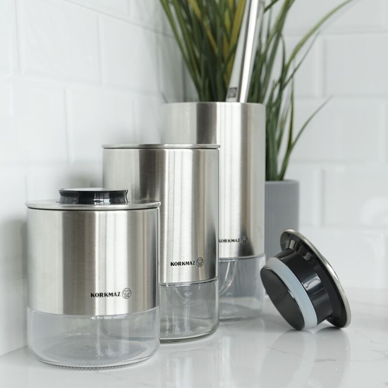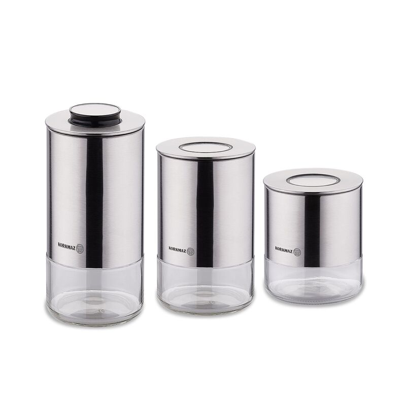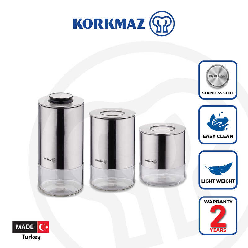 Korkmaz Stora Plus Dry Food Storage Container Set - BPA Free, 3-Piece, Silver, Made in Turkey
