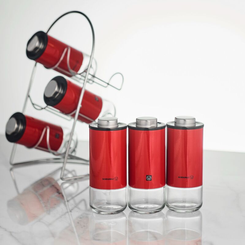 Korkmaz Stora Plus Spice Rack Organizer with Set of 6 Glass Spice Jars - Made in Turkey