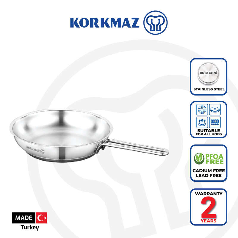 Korkmaz Tombik Stainless Steel Frying Pan , Made in Turkey, Induction Compatible