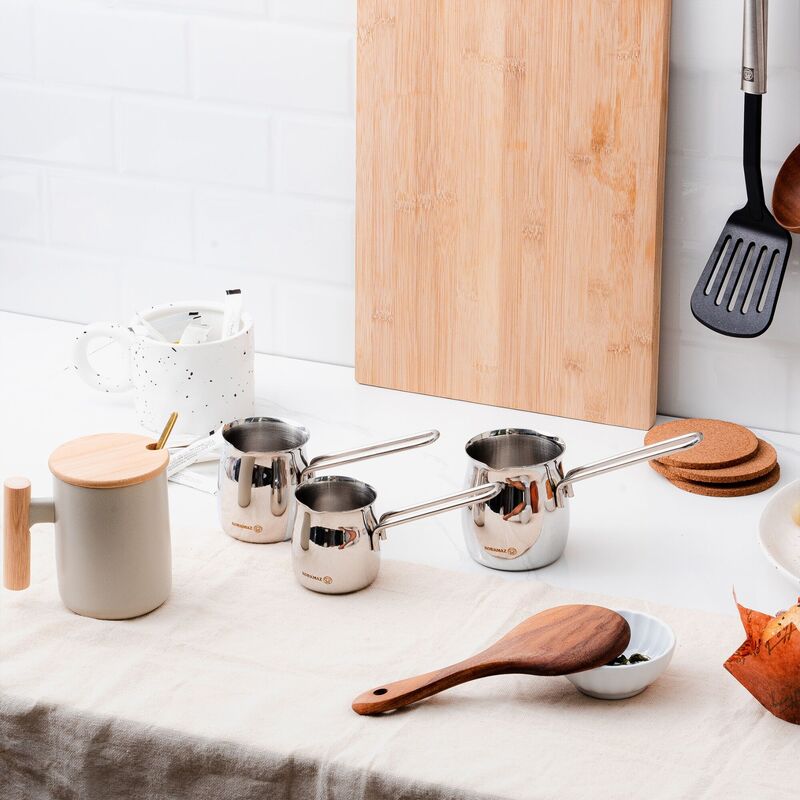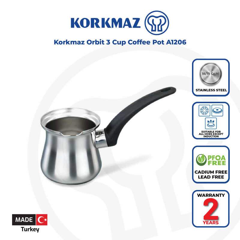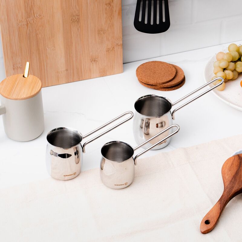 Korkmaz Tombik Stainless Steel Turkish Coffee Pot Set - Made in Turkey