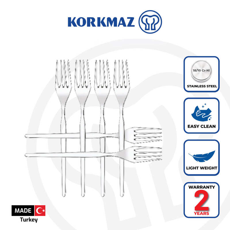 Korkmaz Truva Stainless Steel Dinner Forks Set - 6pcs, Made in Turkey