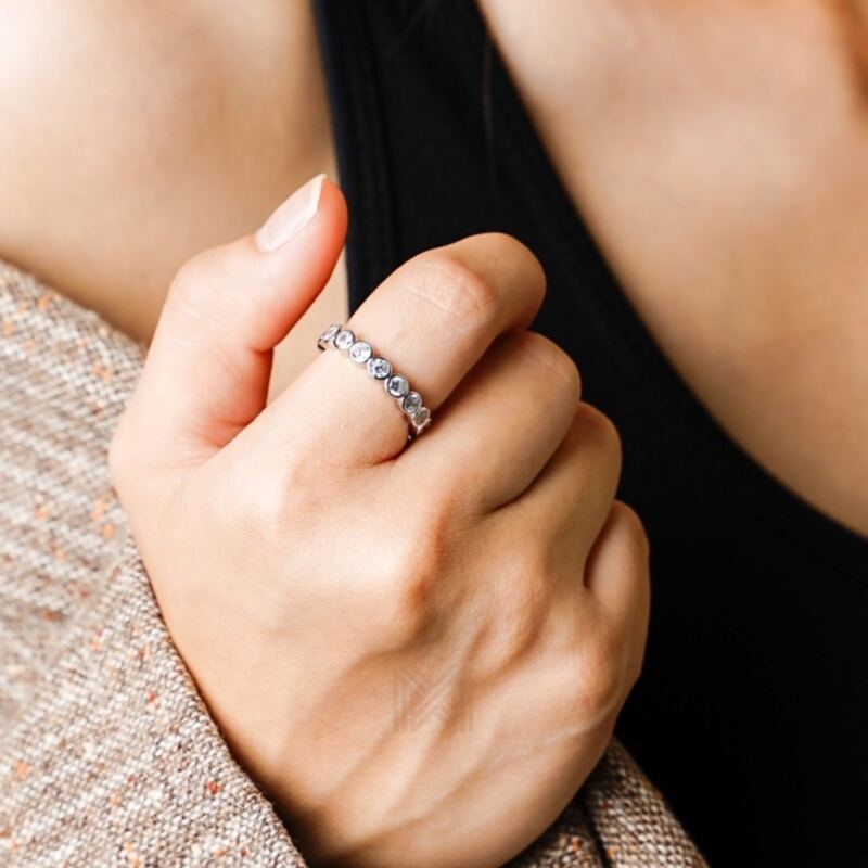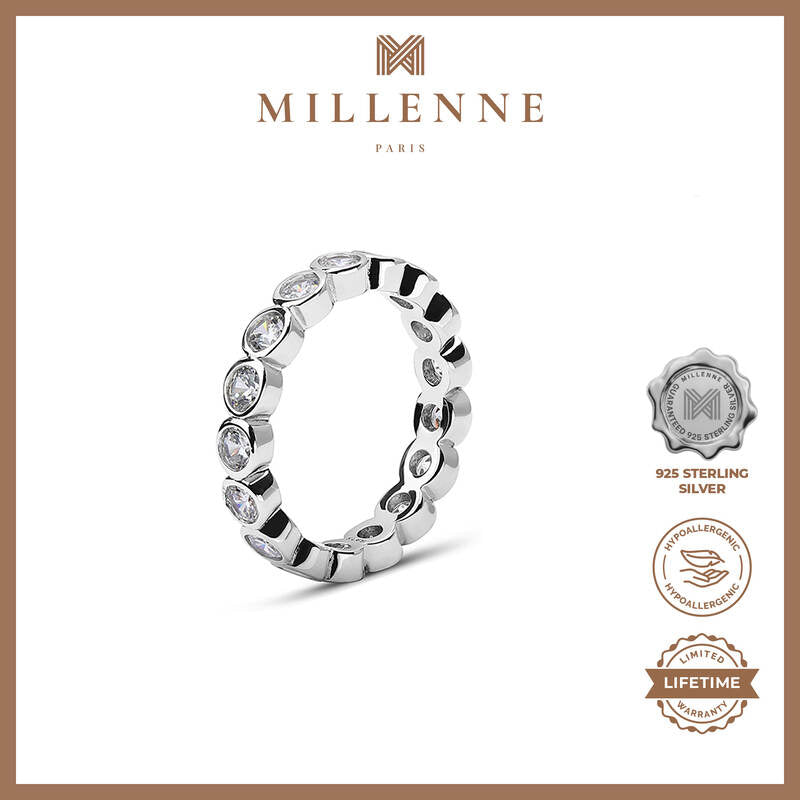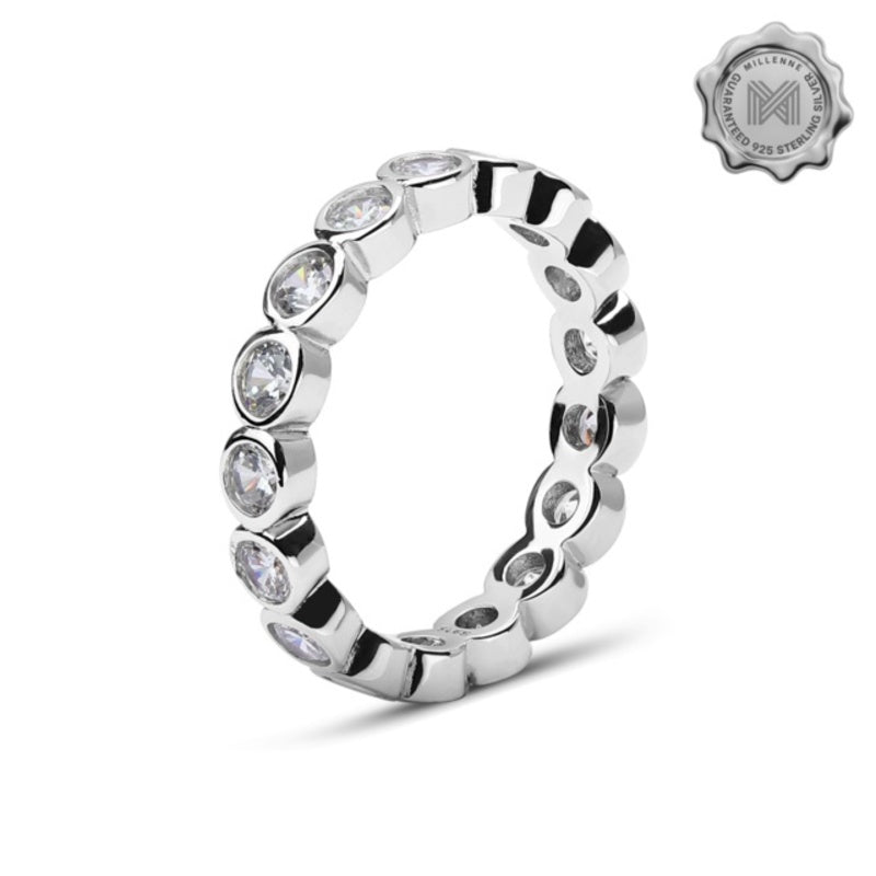 MILLENNE Made For The Night Bezel Set Circular Crustal Cubic Zirconia Rhodium Ring with 925 Sterling Silver