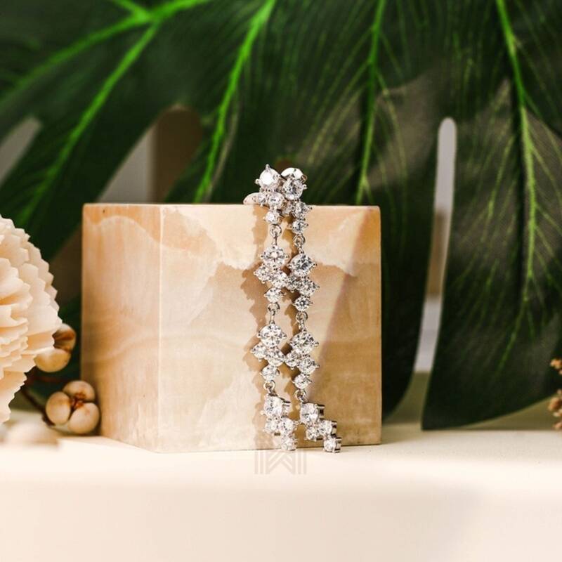 MILLENNE Made For The Night Diamond Triads Cubic Zirconia Rhodium Drop Earrings with 925 Sterling Silver