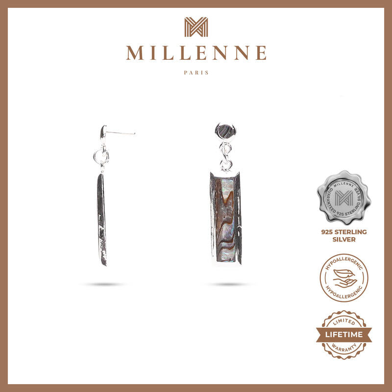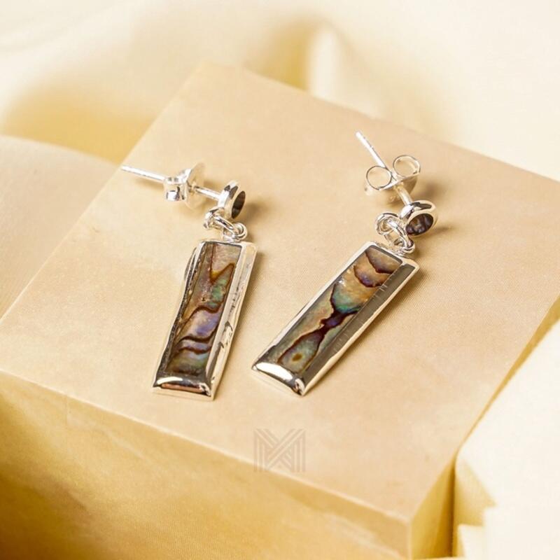 MILLENNE Millennia 2000 Abalone Shell Rectangle Silver Drop Earrings with 925 Sterling Silver