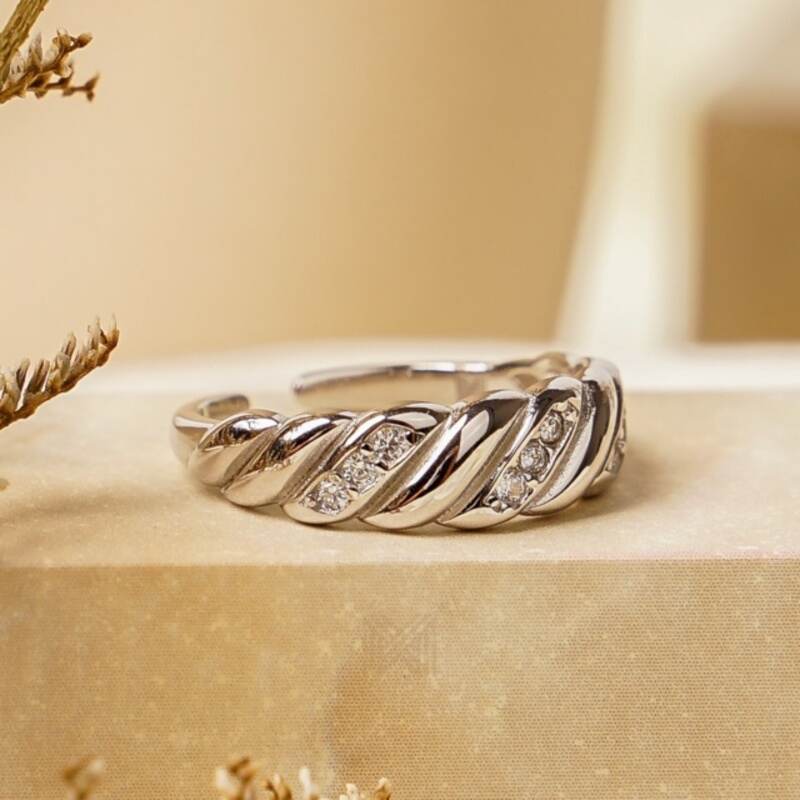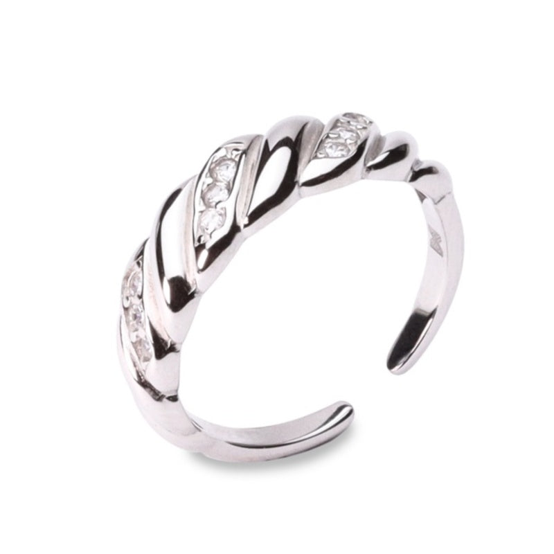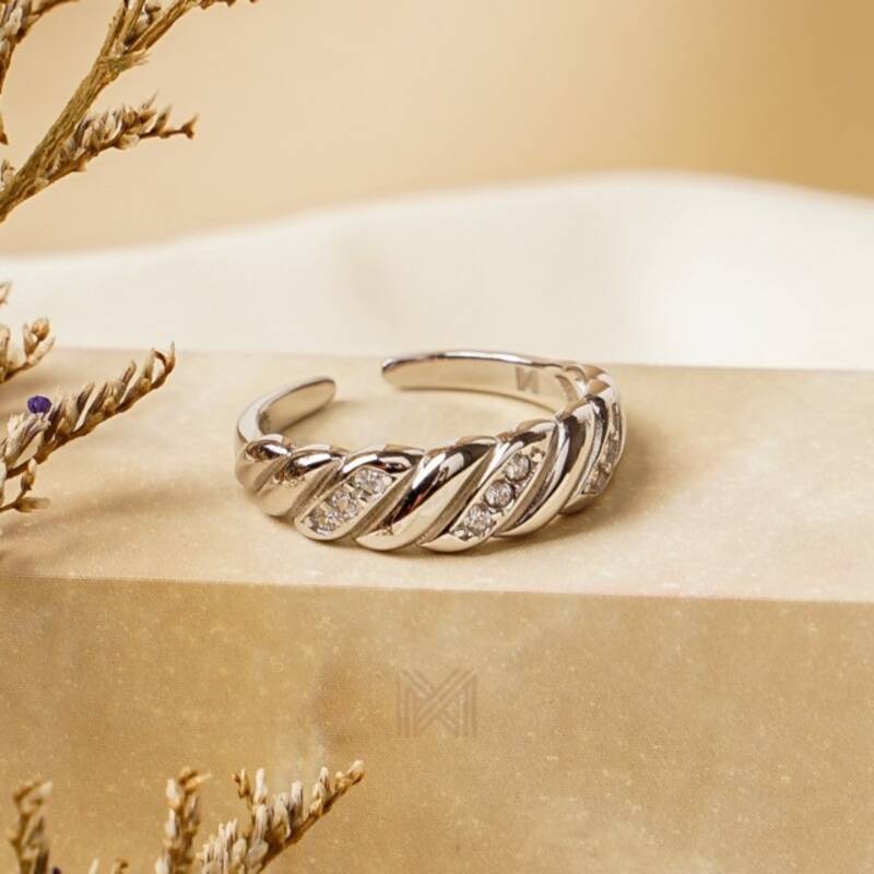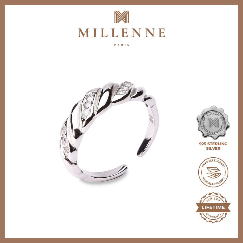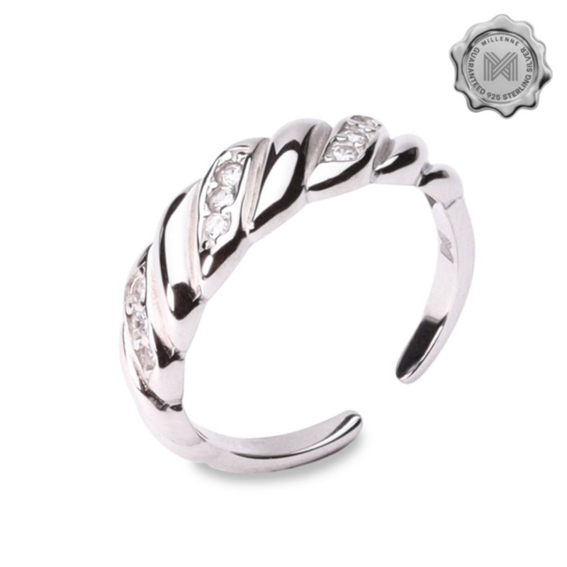 MILLENNE Millennia 2000 Croissant Studded Cubic Zirconia White Gold Ring with 925 Sterling Silver