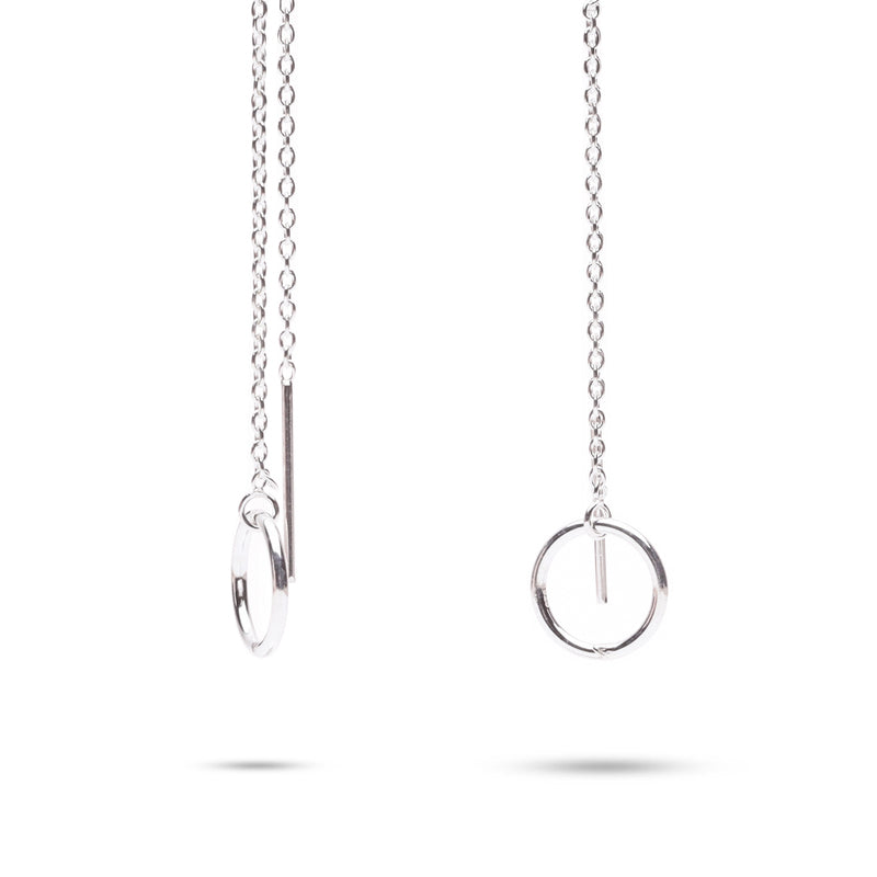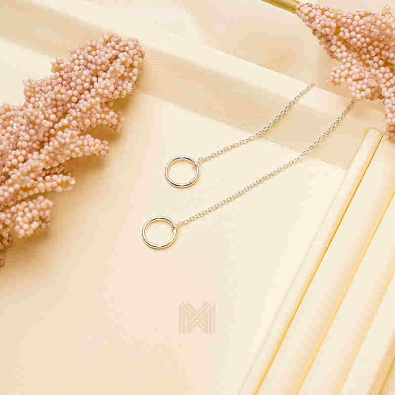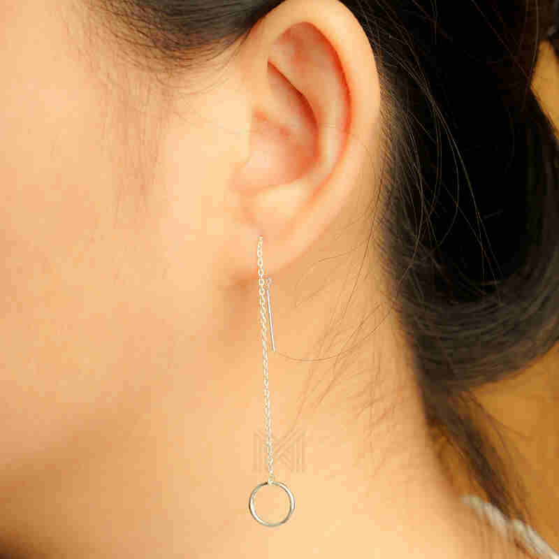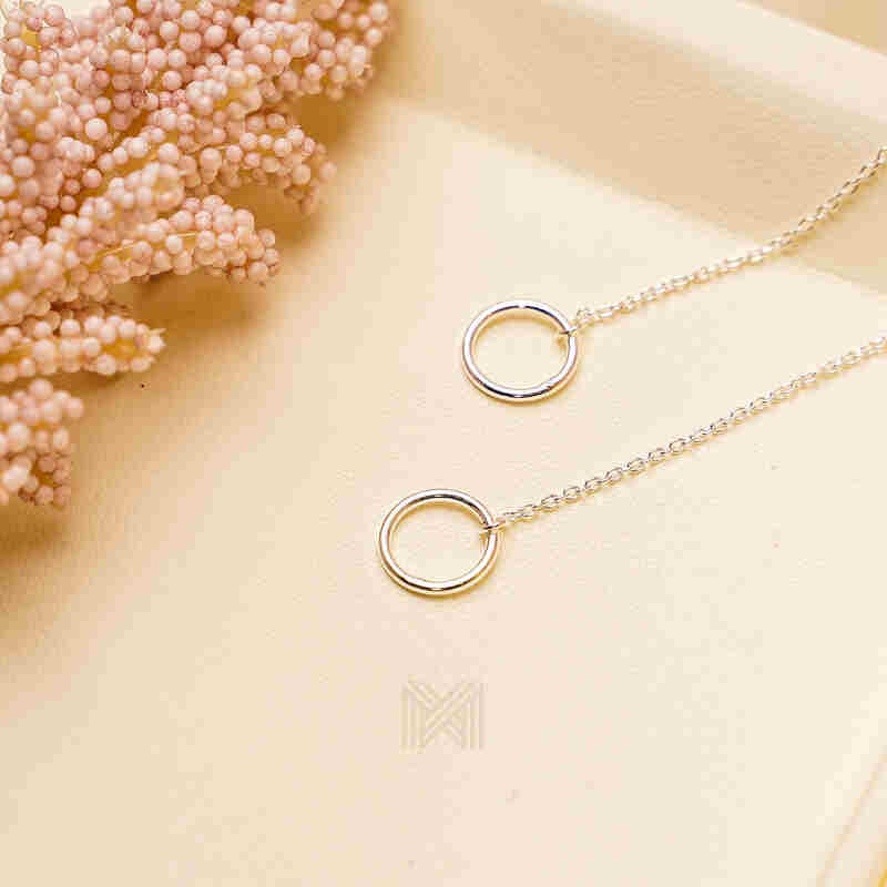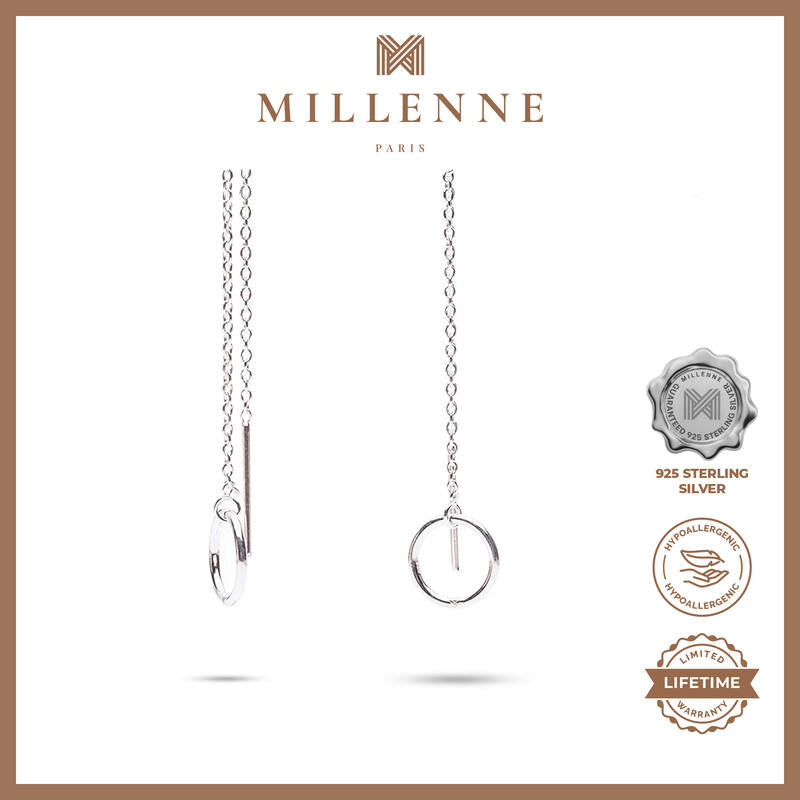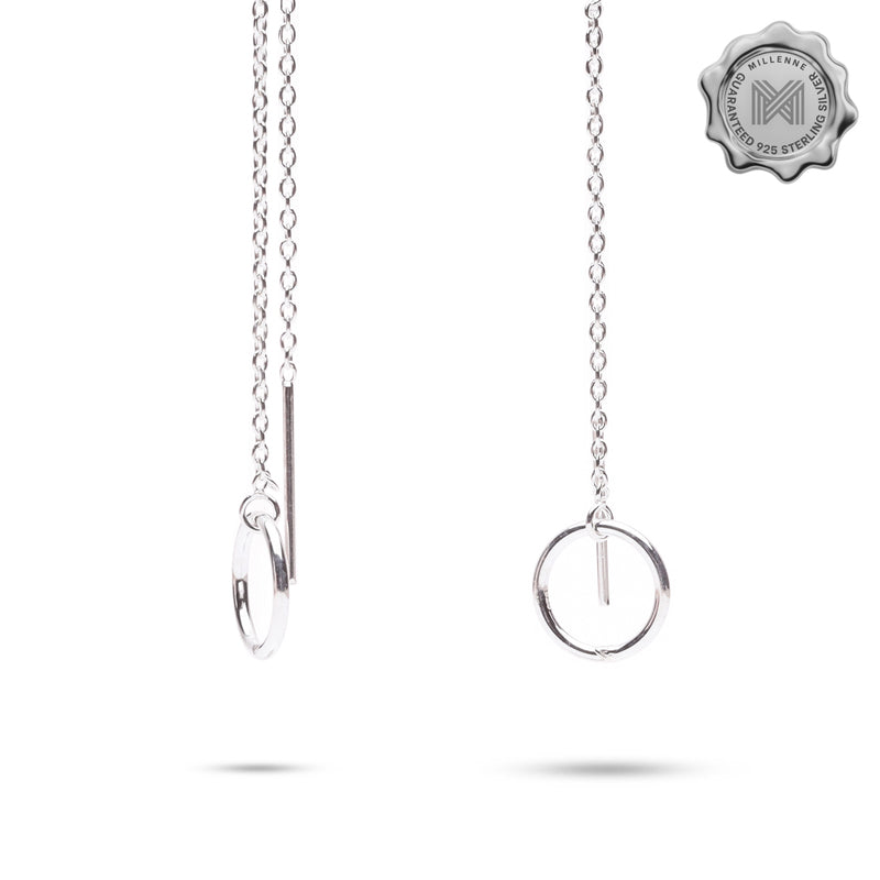 MILLENNE Minimal Circle Silver Threader Earrings with 925 Sterling Silver