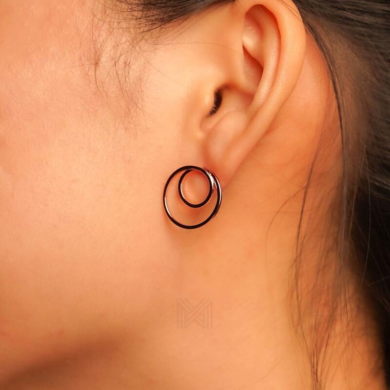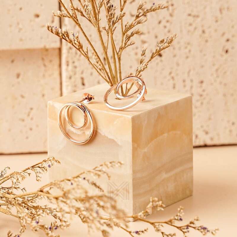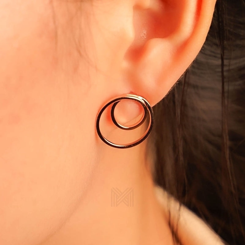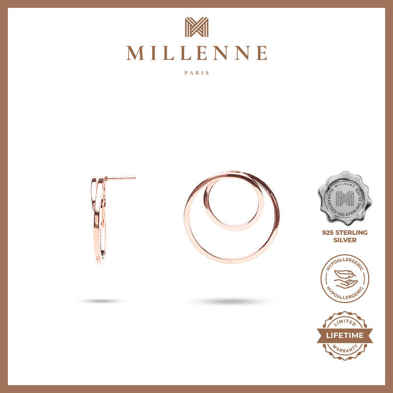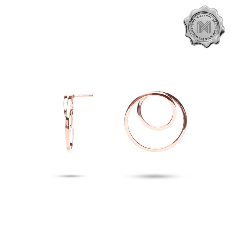 MILLENNE Minimal Double Circles Rose Gold Stud Earrings with 925 Sterling Silver
