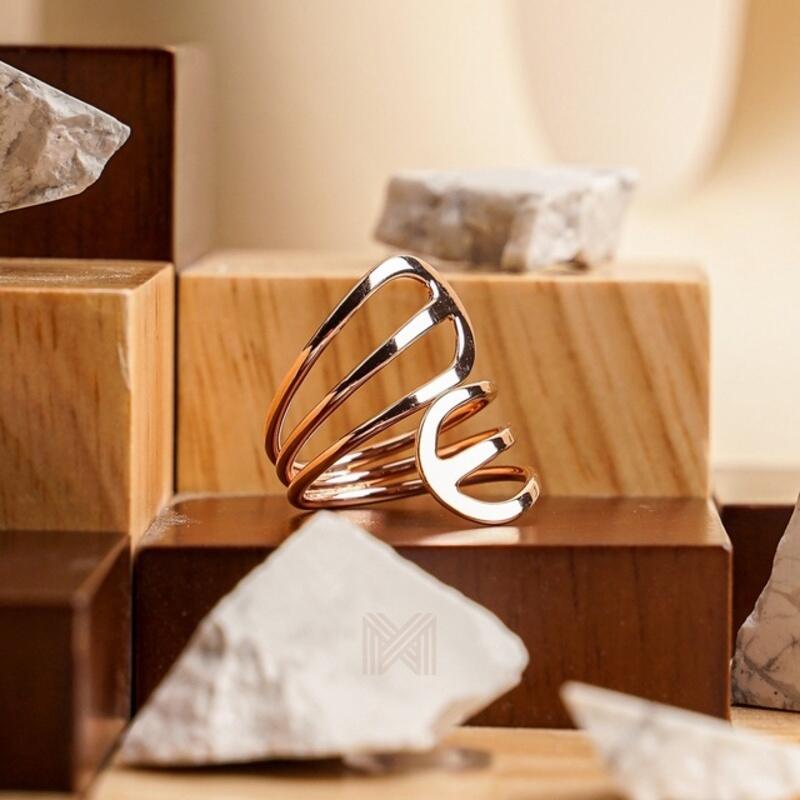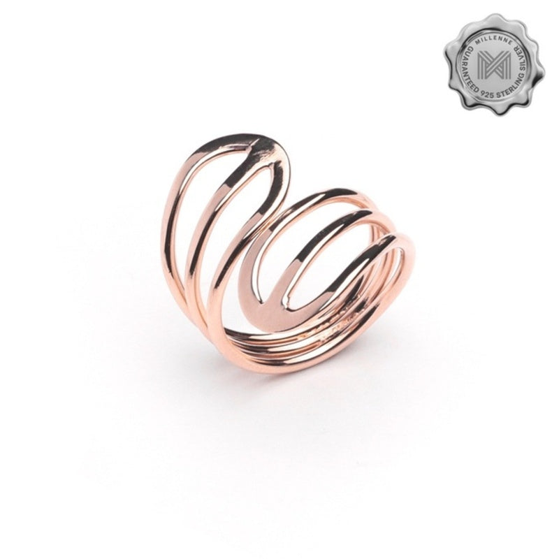 MILLENNE Minimal Open Airy Wire Rose Gold Ring with 925 Sterling Silver