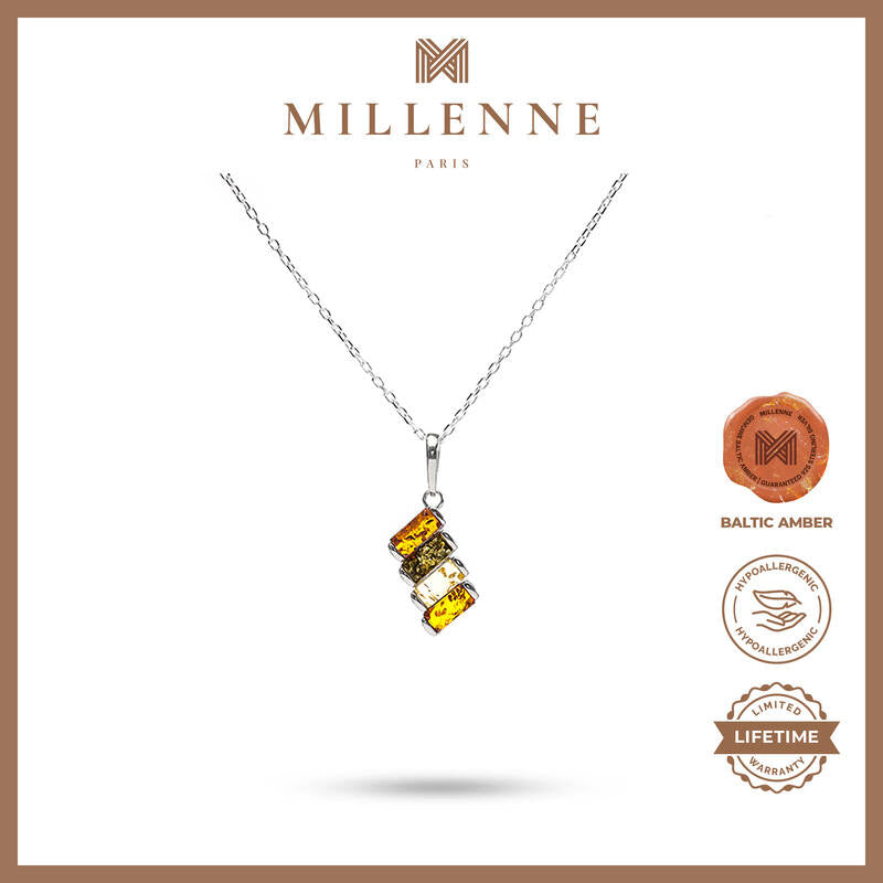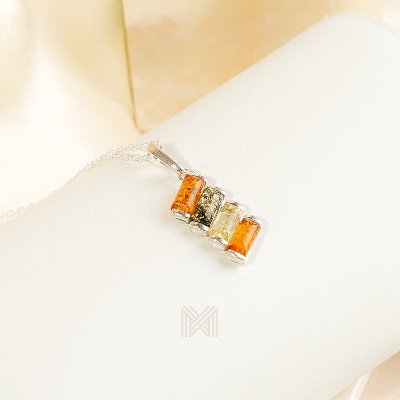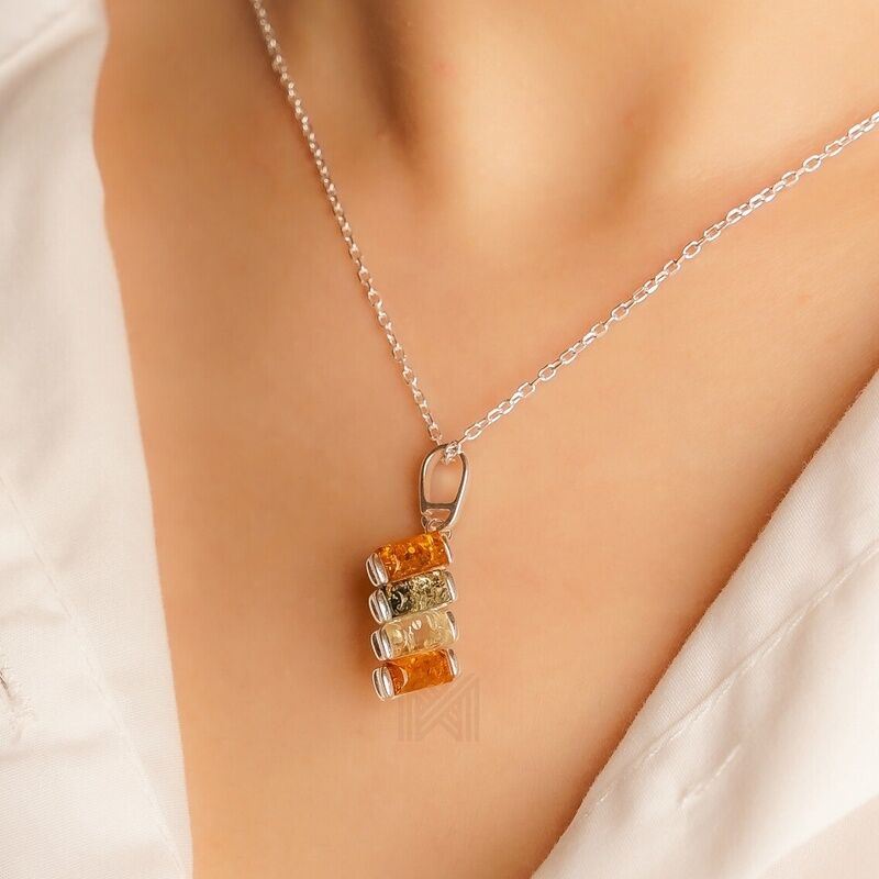MILLENNE Multifaceted Baltic Amber Xylophone Silver Pendant with 925 Sterling Silver
