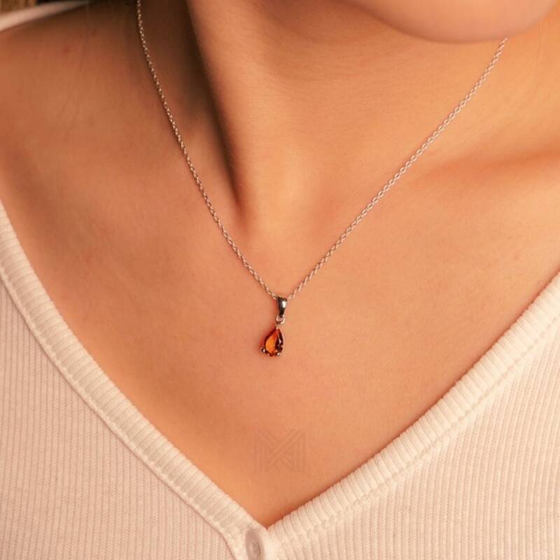 MILLENNE Multifaceted Citrine Stone Pear Shape Silver Pendant with 925 Sterling Silver