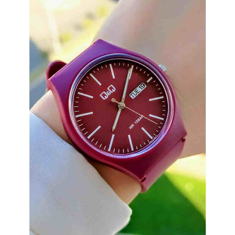 Q&Q Watch by Citizen A212J011Y Men Analog Watch with Red Rubber Strap