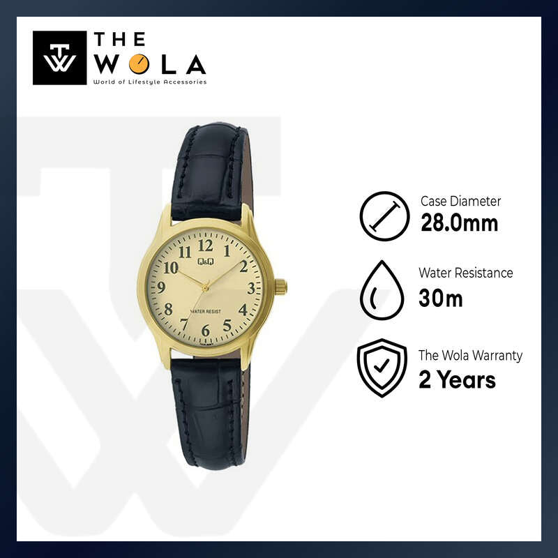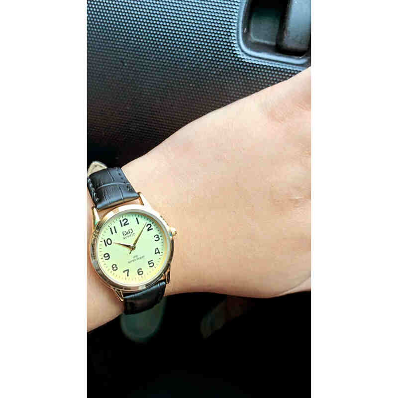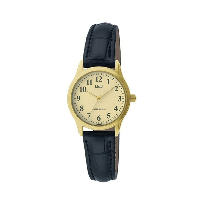 Q&Q Watch by Citizen C03A-008PY Women Analog Watch with Black Leather Strap
