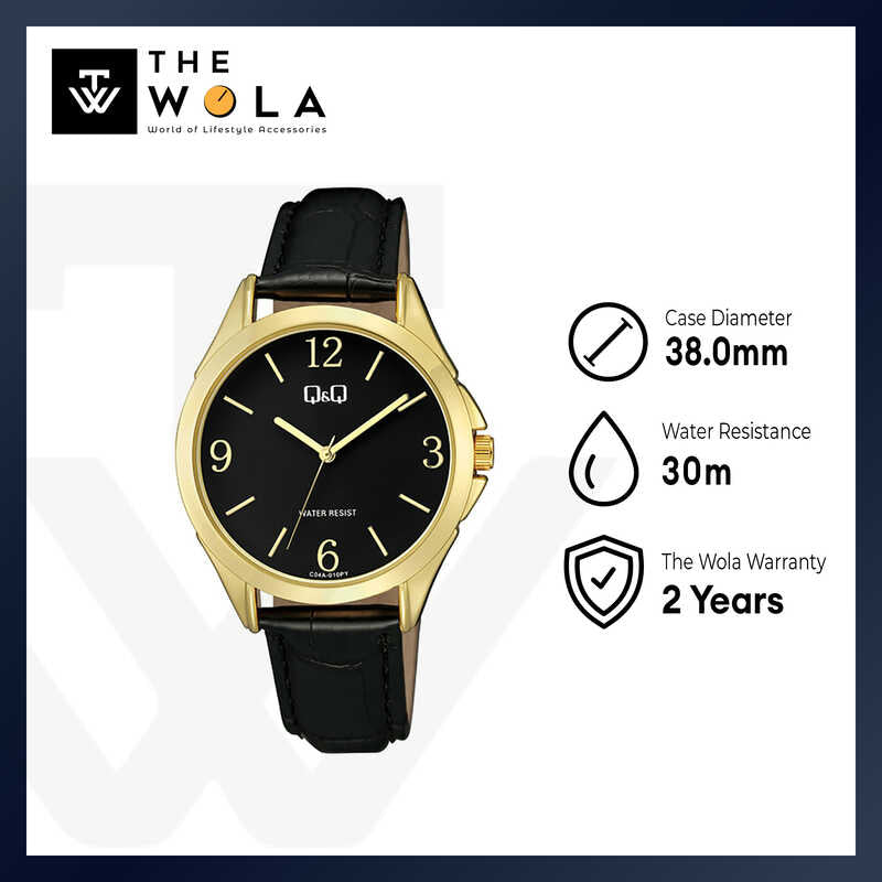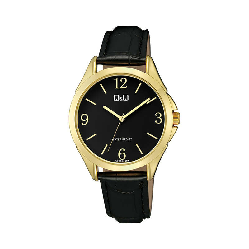 Q&Q Watch by Citizen C04A-010PY Women Analog Watch with Black Leather Strap