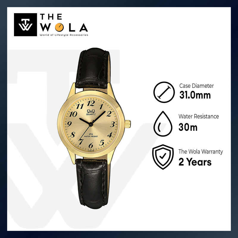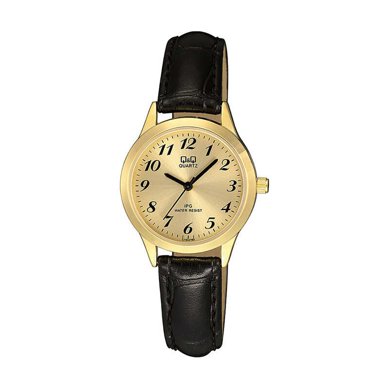 Q&Q Watch by Citizen C153J103Y Women Analog Watch with Black Leather Strap