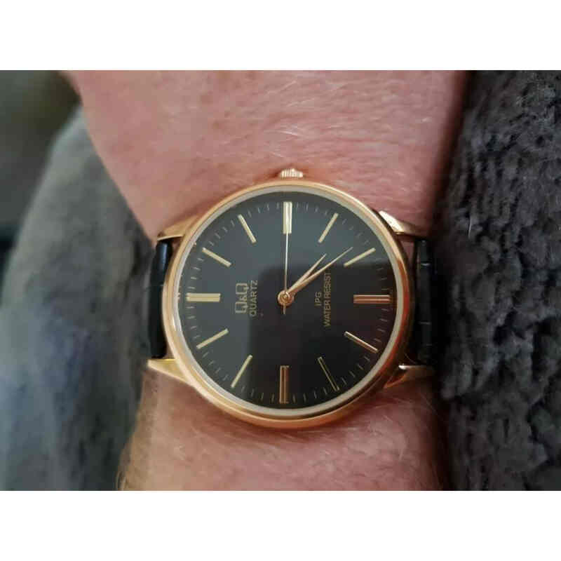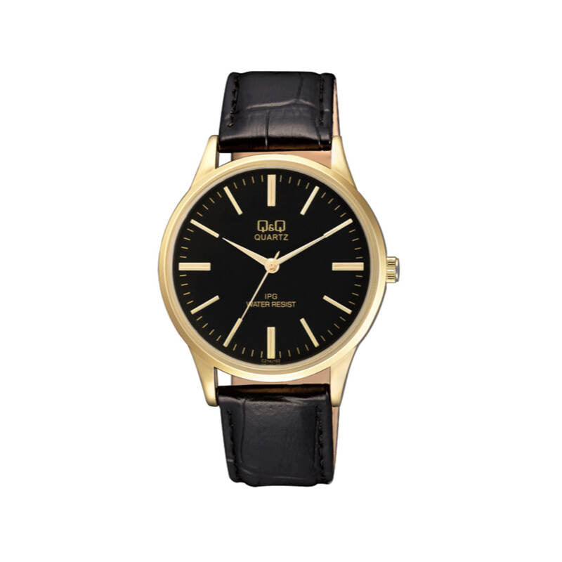 Q&Q Watch by Citizen C214J102Y Men Analog Watch with Black Leather Strap