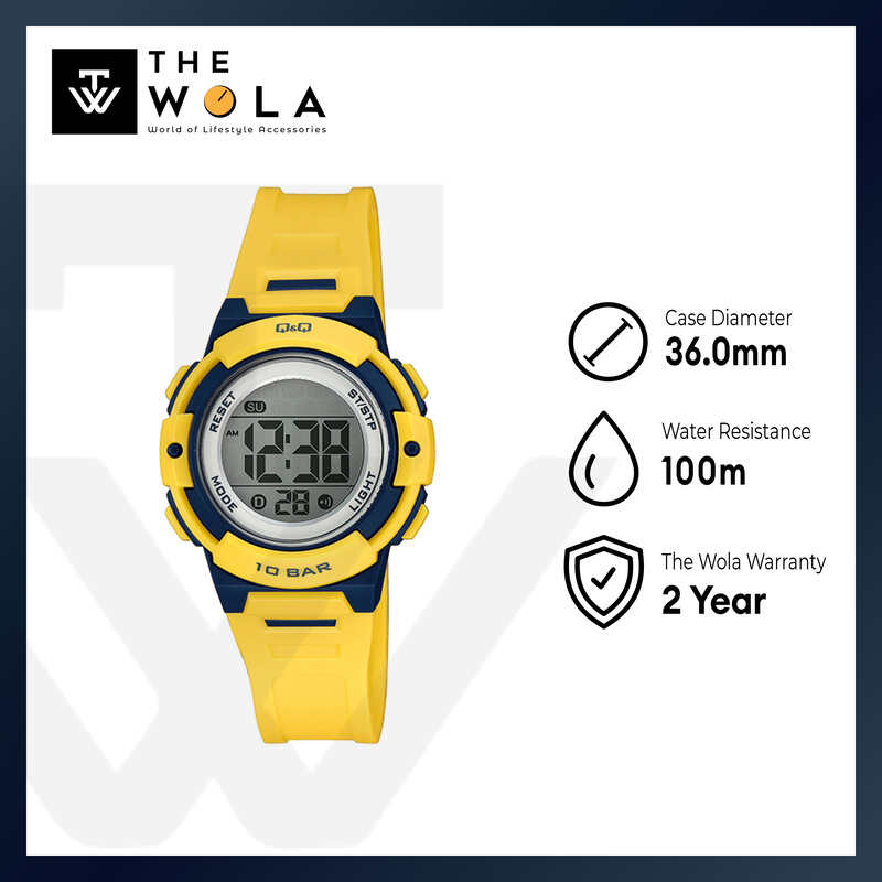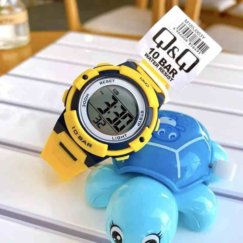 Q&Q Watch By Citizen M185J003Y Kids Digital Watch with Yellow Rubber Strap
