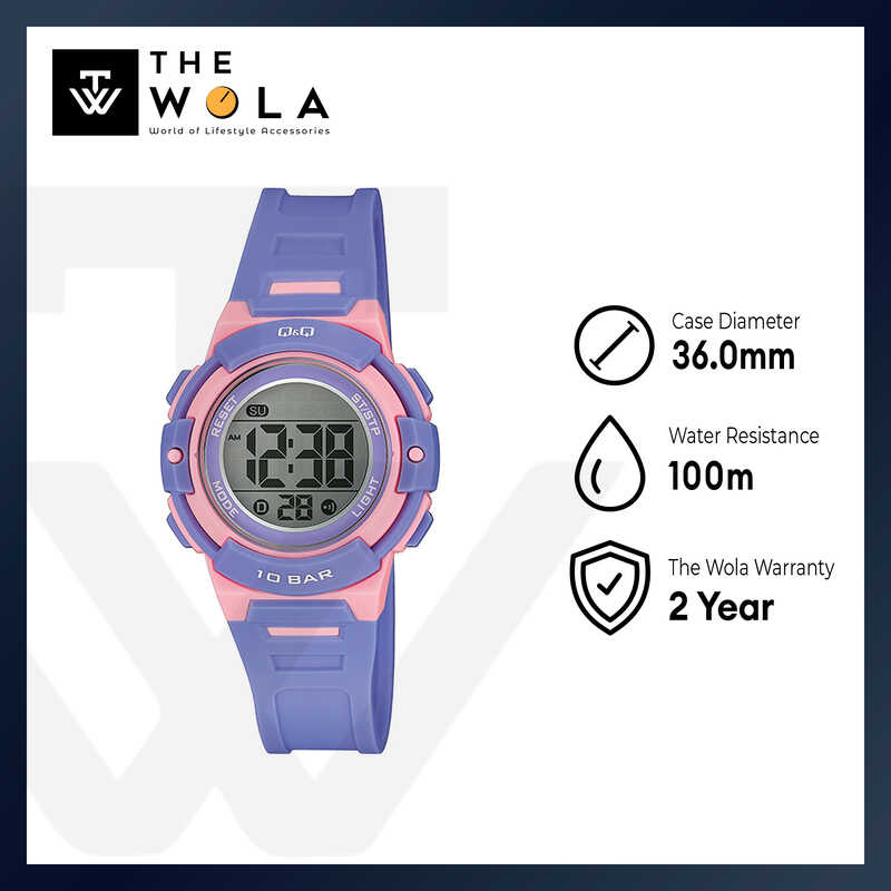 Q&Q Watch By Citizen M185J005Y Kids Digital Watch with Purple Rubber Strap